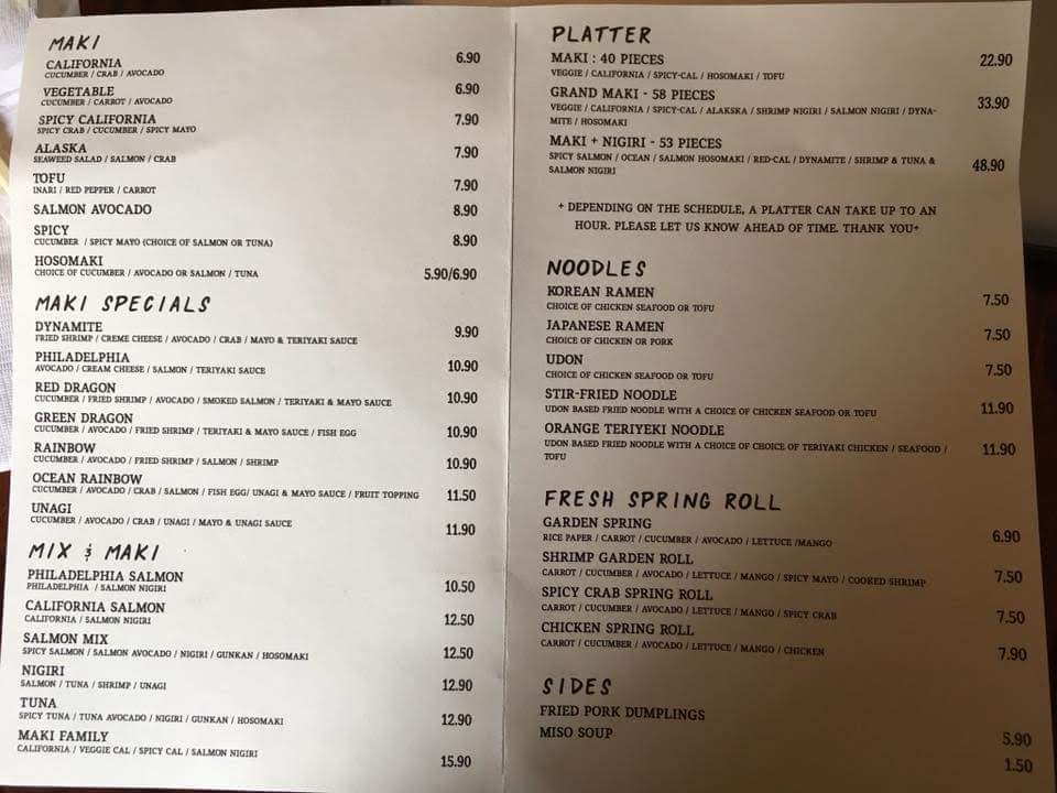 Maki Sushi & Noodle Menu